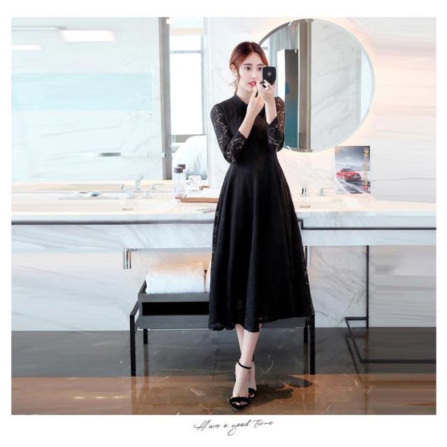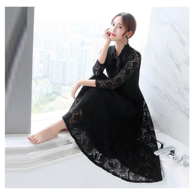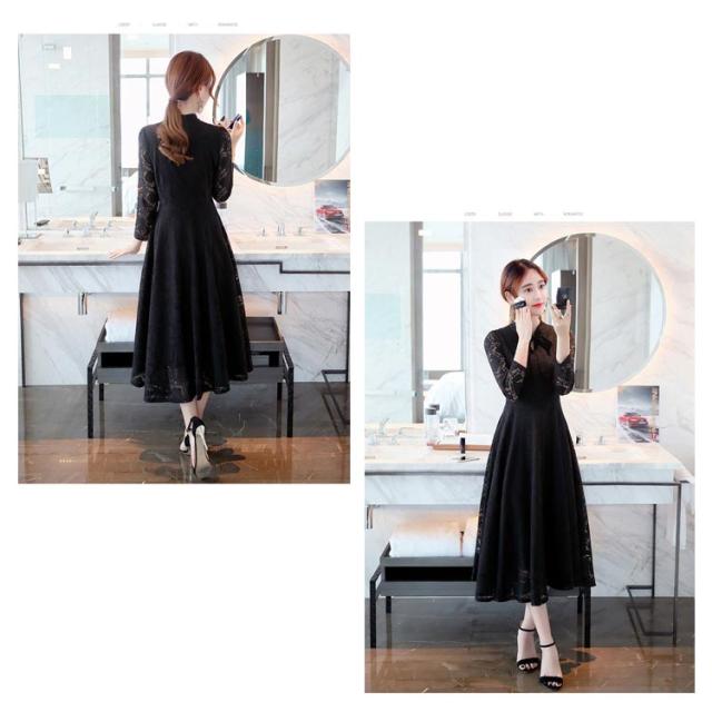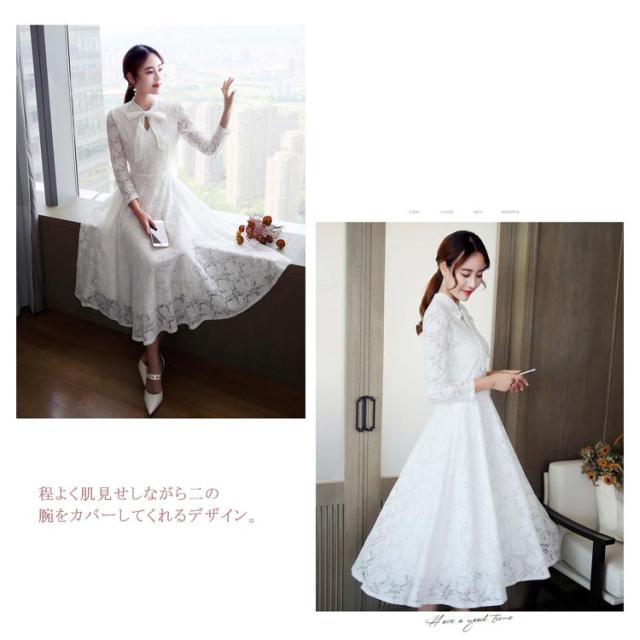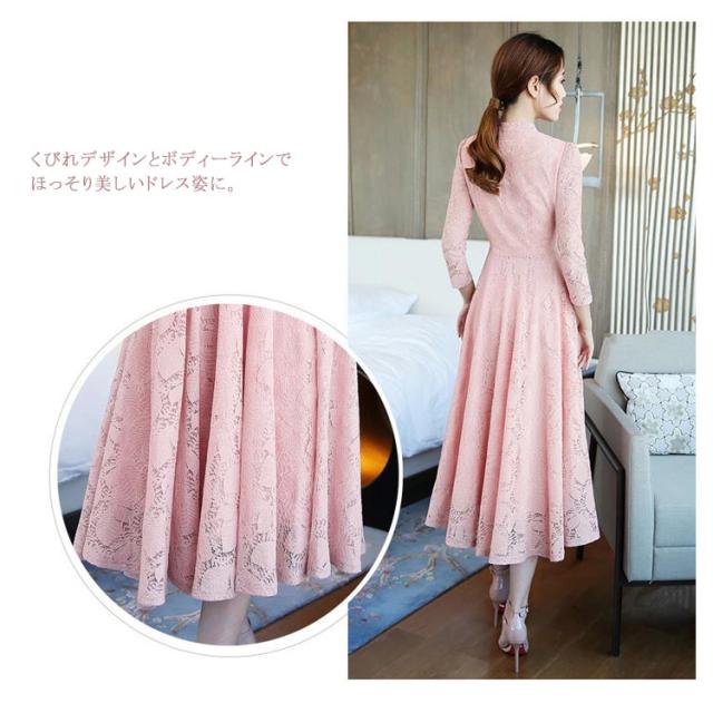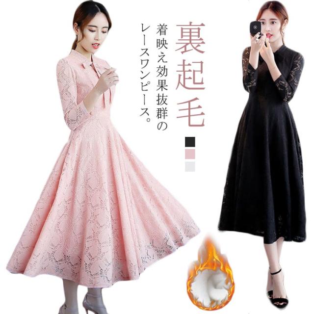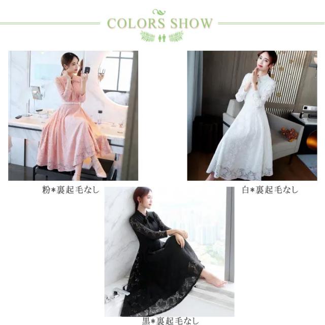 総レース ワンピース 裏起毛 フォーマルワンピース パーティードレス 結婚式 ワンピース スタンドカラー リボン 入園 入学式 卒業 卒園式 七五三 20代 30代 40代 50代 春 秋 冬 裏起毛なし S M L XL 2XL 3XL
