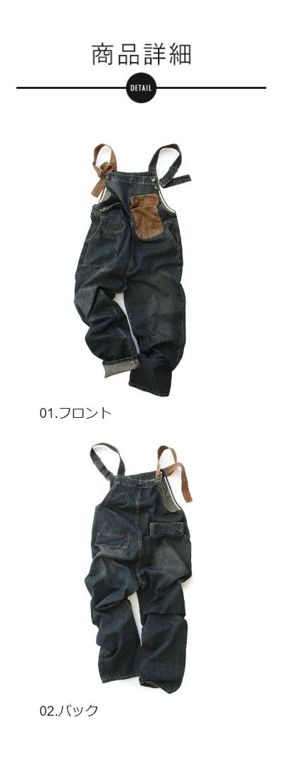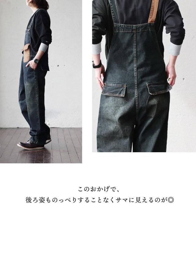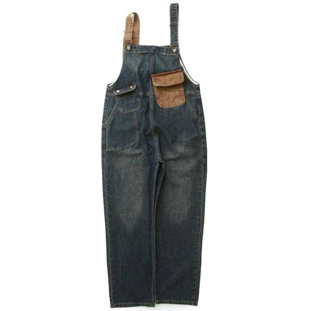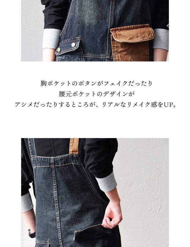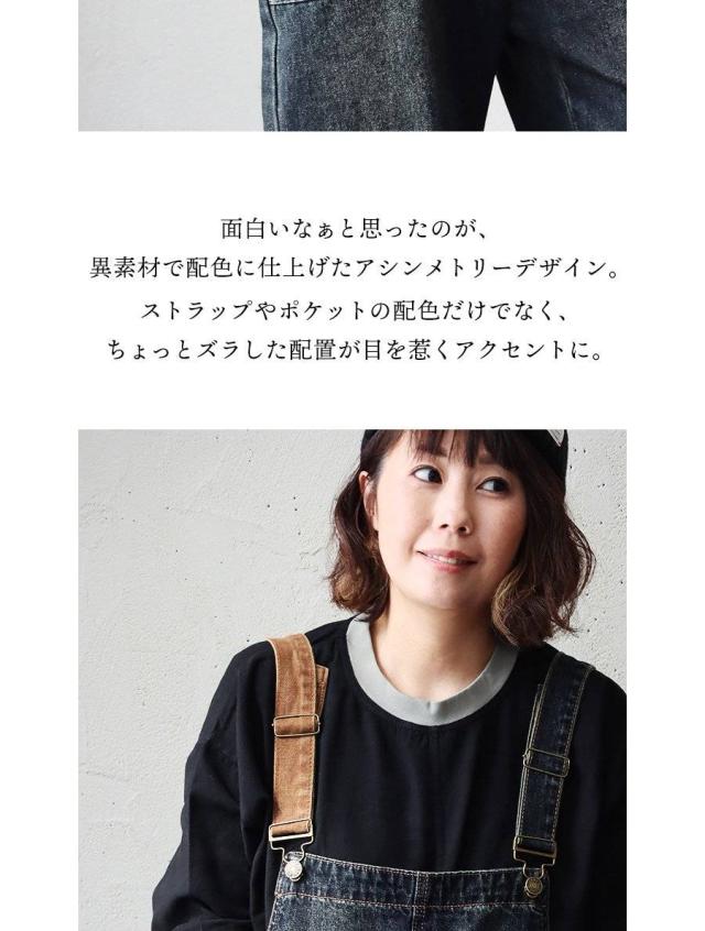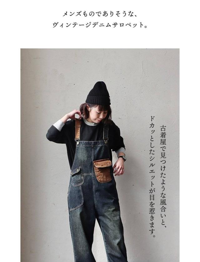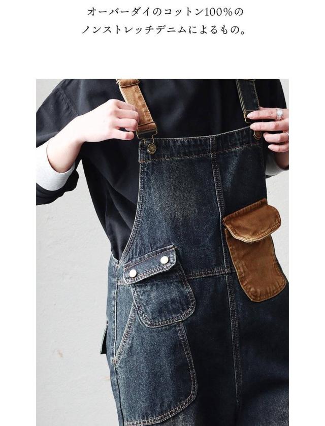 デニム サロペット レディース オーバーオール 綿100% しっかり 丈夫 ダメージ 配色切り替え ワイドシルエット ポケット ゆったり 大きいサイズ カジュアル ヴィンテージ ユーズドウォッシュ アメカジ パティ