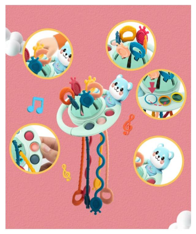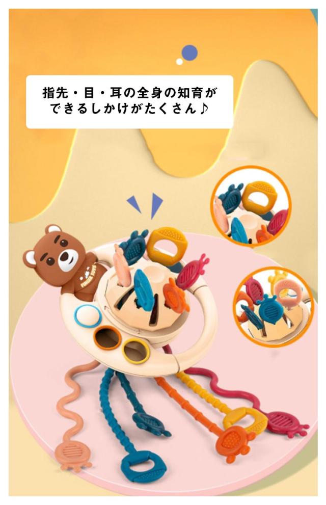 | 赤ちゃんの好奇心をくすぐる仕掛けがついたおもちゃ! 指先・目・耳の全身の知育ができるしかけがたくさん♪ 食品級のシリコン素材を使用し、耐久性はもちろん、歯固めとしてもぴったり♪ 赤ちゃんの小さな指でもつかみやすい大きさに設計されています。 空飛ぶ円盤のような形とはっきりした色使いでお子さまの視覚を刺激します。 ぷっくりしている箇所を押すことで指先や手先の発達に繋がります。 | |