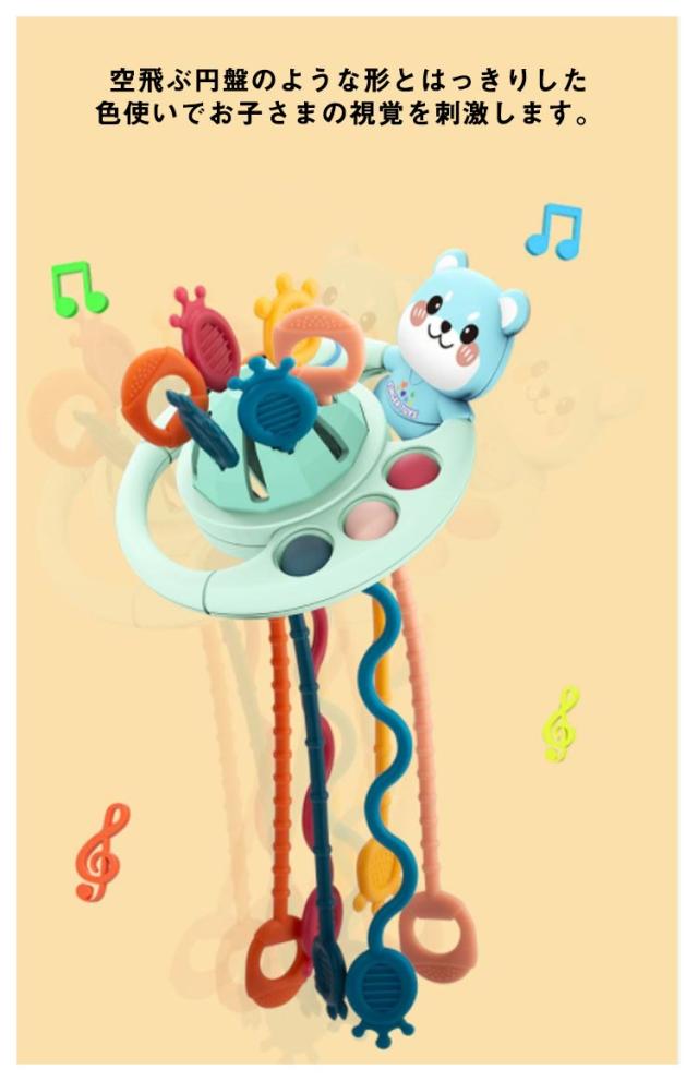 赤ちゃん おもちゃ 幼児用 知覚玩具 知育玩具 引く 指先訓練 指先トレ ベビー プッシュポップ 出産祝い プレゼント 0歳 1歳 2歳 3歳 歯固め 新生児 歯がため はがため トイ UFO 音の出るおもちゃ おもちゃを引く