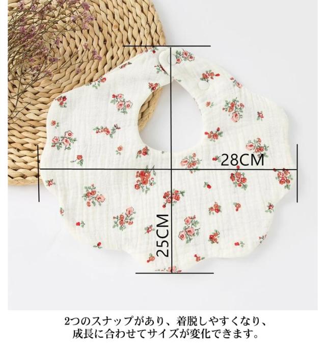 4枚セット スタイ よだれカバー よだれかけ ガーゼ 花びら型 女の子 男の子 可愛い お洒落 360度回転 スナップボタン ベビー 出産祝い 通気性 柔らかい 保育園 幼稚園 食事用 送料無料
