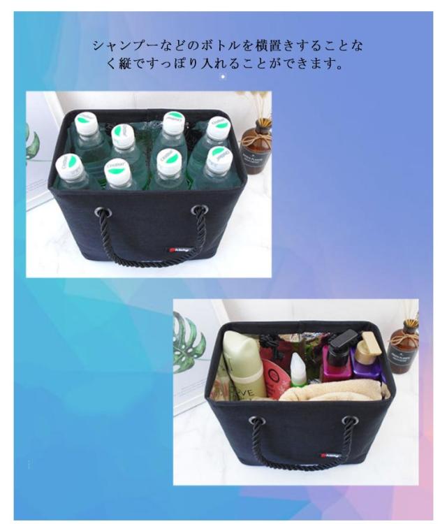 | ジムや温泉、海、プールに必要な洗面用具をまとめて持ち運べるメッシュバッグ。 シャンプーなどのボトルを横置きすることなく縦ですっぽり入れることができます。 天面が開けているので背の高いボトルでもどんどん入れられる! 持ち手が太目のロープを採用しているため、細目のものと比べて手が痛くなりにくく持ちやすいです。 底はメッシュになっており水切りができるようになっています。 使用しないときはコンパクトに折り畳めて収納楽々です。 外側は防水生地を採用しているため、水が内部にしみ込んでいくことがありません。 裏地はアルミホイル複合材を使用しており防汚性と撥水性に優れています。 | |