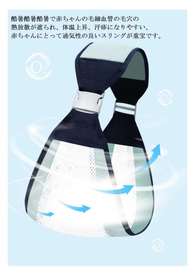 | 良質の3D透気性のよい生地: 良質の薄く軽い綿を使い、柔軟で、快適で、透気性が優れています。 幅広い肩紐:幅広いショルダー設計は赤ちゃんの体重を肩、背中に分散して肩の負担を軽くします。 調節可能:使用者の体型と身長によって、長さが調節可能です。 人に優しい設計:軽くて通気性が良くて、授乳に便利です。酷暑酷暑酷暑で赤ちゃんの毛細血管の毛穴の熱放散が遮られ、体温上昇、汗疹になりやすい、赤ちゃんにとって通気性の良いスリングが重宝です。 | |
