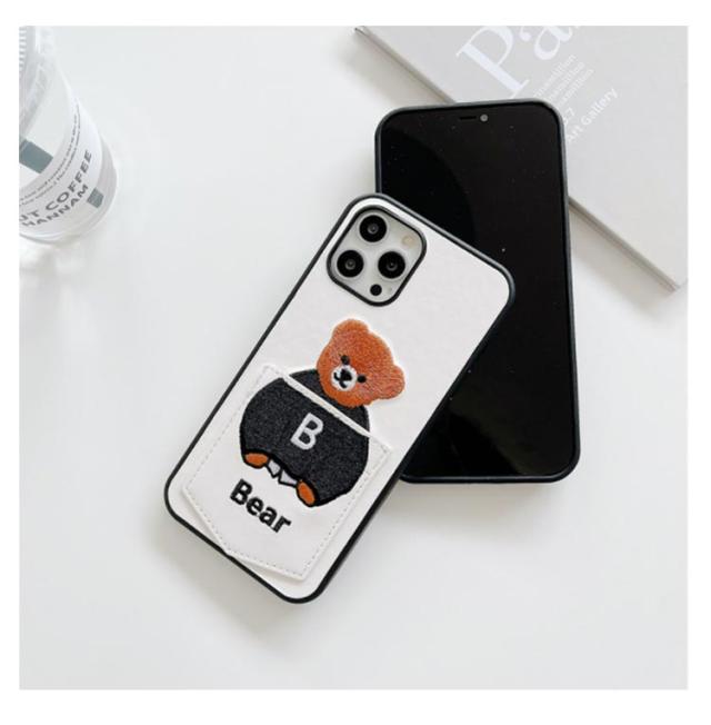 iphone14 ケース かわいい 韓国 iphone14pro ケース アイフォン14ケース iphone13 ケース iphone12 iphoneケース iphone11 iphone se ケース TPU カード収納 くま レディース 刺繍 かわいい クマ キャラクター