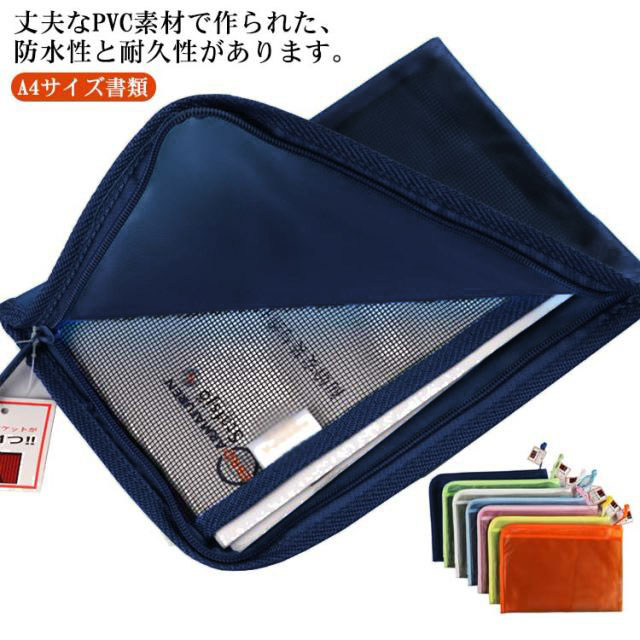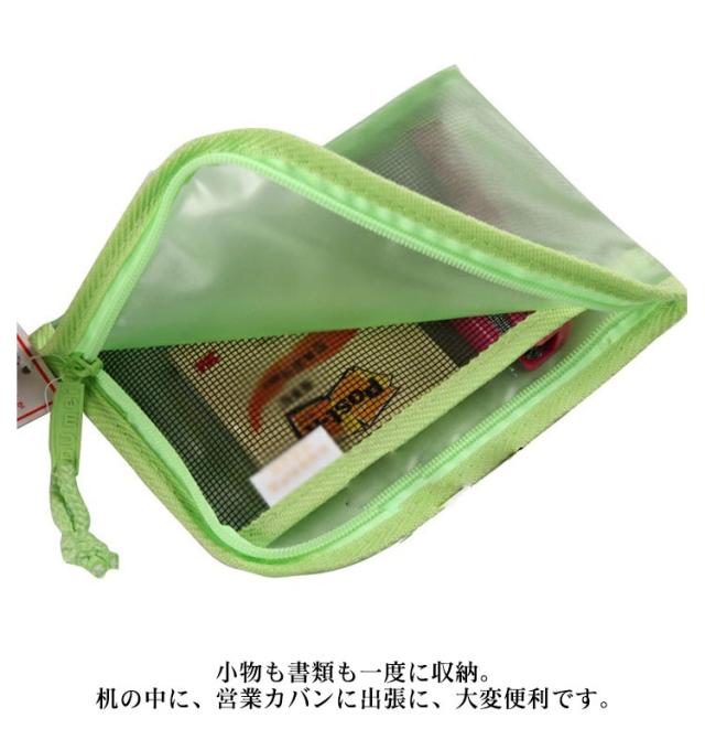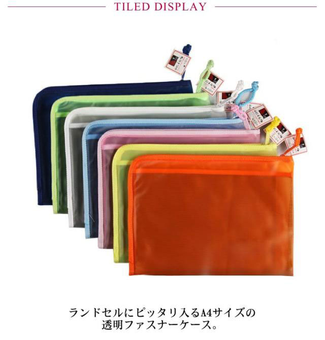 ファスナーケース ケース ポーチ ポケット付き メッシュケース 仕切り 透明ケース ファイル袋 ランドセルにピッタリ A4サイズ書類 保管 収容 収納 分類 保存 整理 クリアファイル マルチタイプ 色別分類 文房具 事務用品 オフィス用品