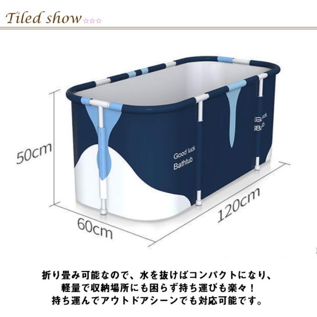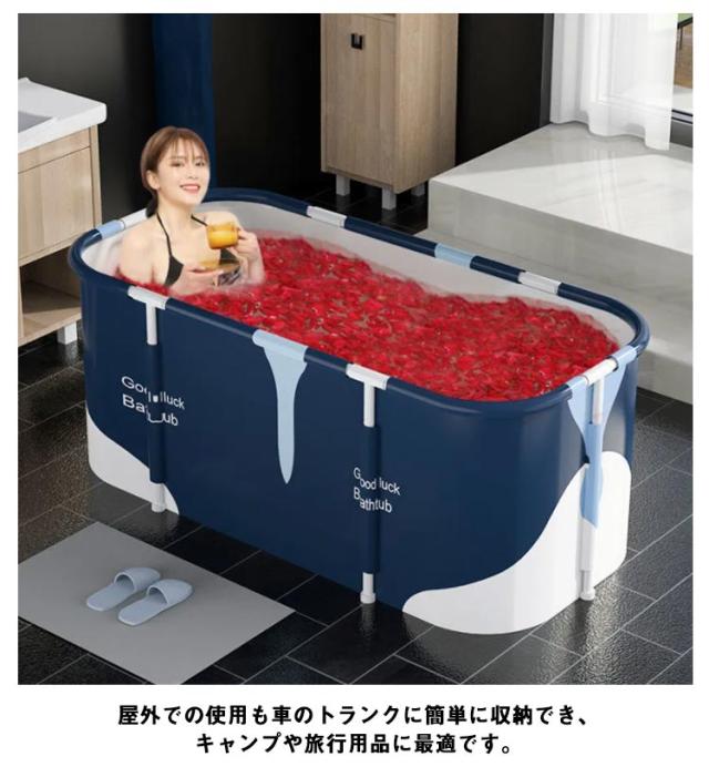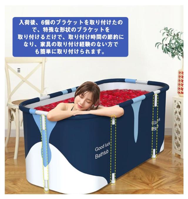 | 気軽にバスタイム!家庭用折りたたみバスタブ 折り畳み可能なので、水を抜けばコンパクトになり、軽量で収納場所にも困らず持ち運びも楽々!持ち運んでアウトドアシーンでも対応可能です。 インフレータブル浴槽が不要で、設置も簡単です。入荷後、6個のブラケットを取り付けたので、特殊な形状のブラケットを取り付けるだけで、取り付け時間の節約になり、家具の取り付け経験のない方でも簡単に取り付けられます。 無毒で耐久性の高い高密度のプラスチック製で、肌に柔らかく、触感良く体に優しい。 十分な長さにより思い存分で足を延ばすことができます。人間工学により快適でSPAをしながら、本を読みながら半身浴を楽しめます♪ お湯にゆったり浸かって日々のストレスや疲れを癒しましょう。 お手軽にバスタブをお楽しみいただけます。シャワールームで使えるコンパクトデザインで、浴槽がないお家でも、お湯に浸かる至福のバスタイムが可能です。屋外での使用も車のトランクに簡単に収納でき、キャンプや旅行用品に最適です。 | |
