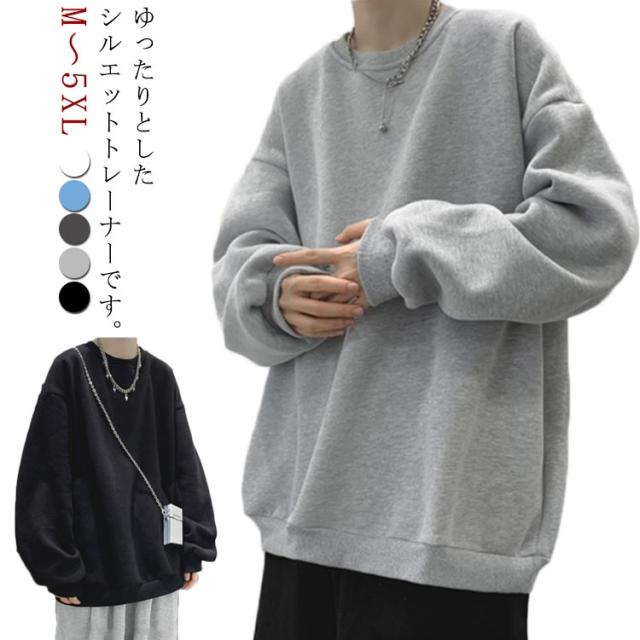 全5色 ビッグシルエット トレーナー メンズ レディース ユニセックス 厚手 裏起毛 もこもこ スウェット スウェットトレーナー 長袖 カジュアル ストリート ゆったり 部屋着 大きいサイズ M〜5XL 春服 秋服 冬服 送料無料