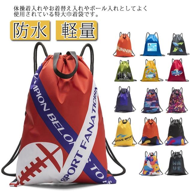 巾着袋 大 34*42cm ナップサック スポーツ お着替え袋 巾着袋 大人 大きいサイズ 体操着入れ ジムサック ボールバッグ プール 水泳 部活 濡れ衣入れ 防水 ナイロン 軽量 総柄 マルチ柄 おしゃれ 小学生 中学生 高校生 巾着袋 シューズバッグ