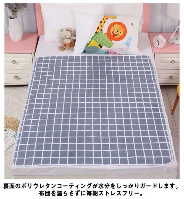 | すれば布団を毎回干すストレスから解放されます。朝までお布団をしっかりガード! 介護シーンはもちろん、お子様のおねしょや女性の生理対策、ペットの粗相対策など幅広くお使いいただけます。 裏面のポリウレタンコーティングが水分をしっかりガードします。布団を濡らさずに毎朝ストレスフリー。通常のパットでは染み込んでしまっていた水分も防水シーツなら通しません。朝までお布団をしっかりガード!防水シートを使用洗濯ネットを使用すれば、洗濯機で丸洗いOK!簡単に取り外し&洗濯できるので、汚れが気になったらサッと取って洗えます! | |