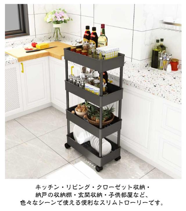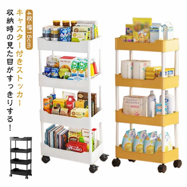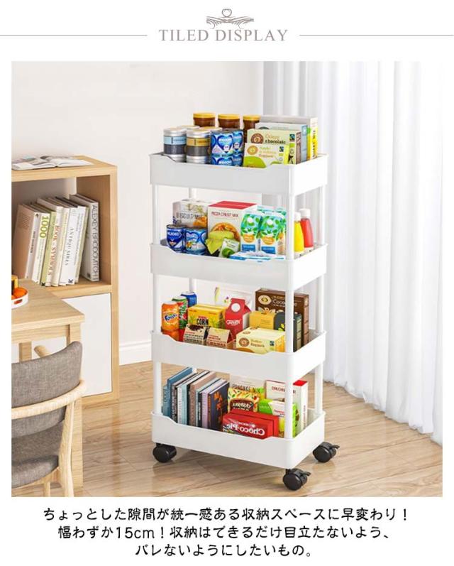 スリムトローリー 4段 幅 15cm スリム 隙間収納 キャスター付き キッチン すきま 収納 隙間 隙間ラック 収納ワゴン すき間収納ワゴン キッチン スリム収納 コンパクト すき間 キッチン隙間収納 隙間収納 キッチンワゴン ストック収納 冷蔵庫 ワゴン