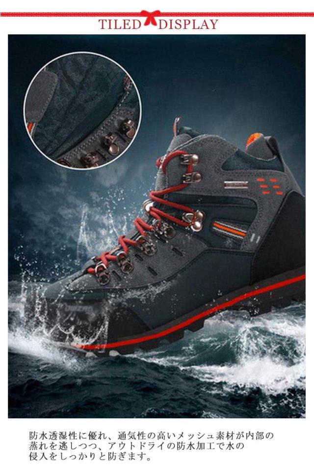 トレッキングシューズ メンズ 防水 トレッキングブーツ 登山靴 アウトドアシューズ ハイキングシューズ ハイカット ミドルカット 幅広 防風 耐滑 滑り止め 衝撃吸収ソール レースアップ ウォーキングシューズ 運動靴