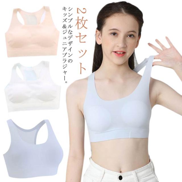 女の子 ブラジャー 2枚セット スポーツブラ チョッキ式 中学生 下着 ジュニア 女児 小学生 中学生 ファーストブラ ハーフトップ ノンワイヤー ナイトブラ 伸縮性 通気性 インナー シームレス