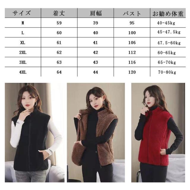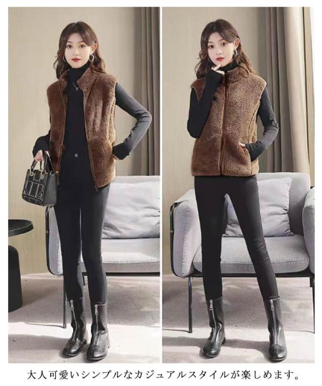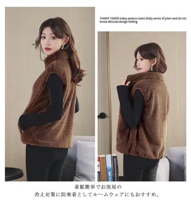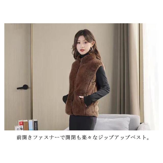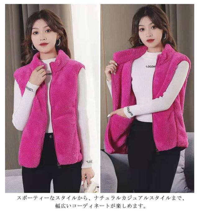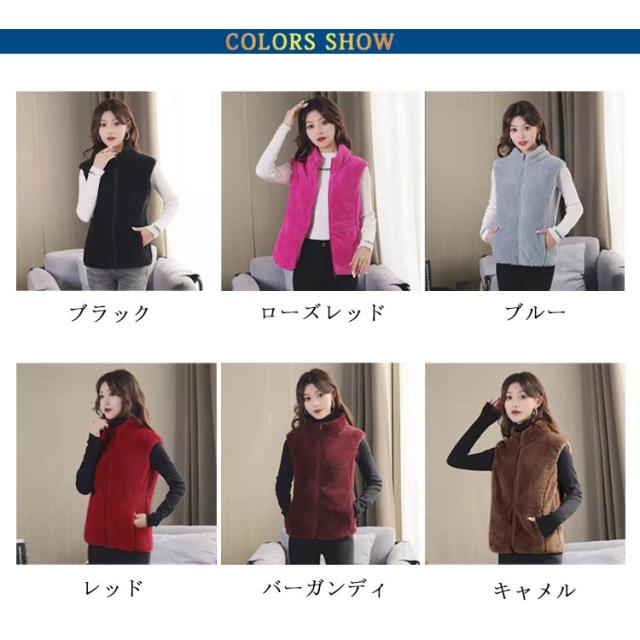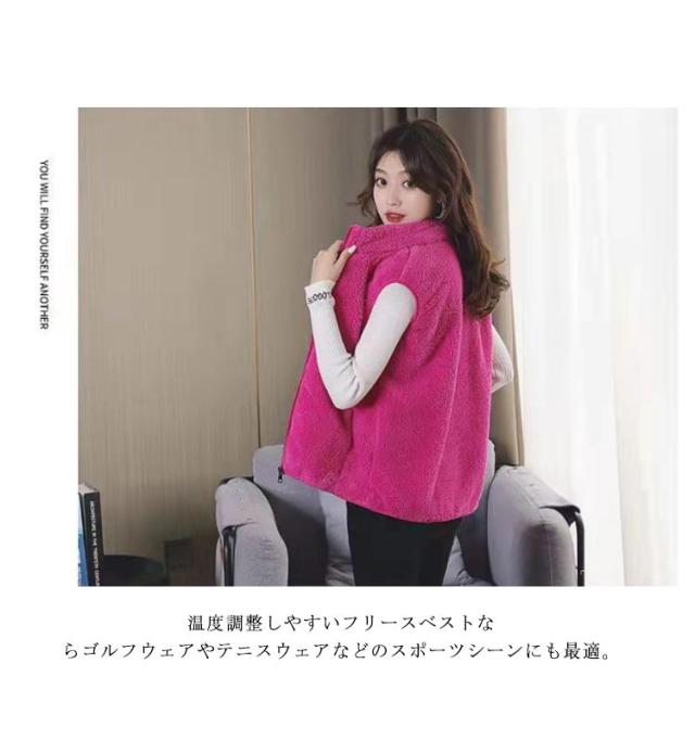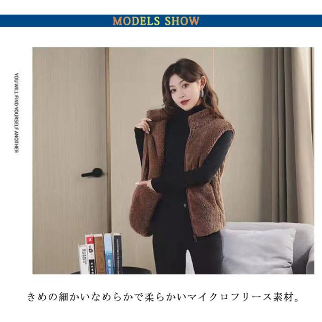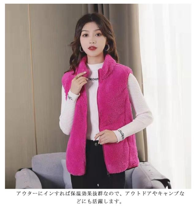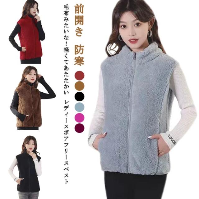 ボアベスト ボアジャケット フリースベスト レディース フリース ボア アウター ベスト 前開き スタンドカラー 立ち襟 ジップアップ 防寒 アウトドア 部屋着 ルームウェア 無地 大きいサイズ 秋 冬 40代 30代 50代