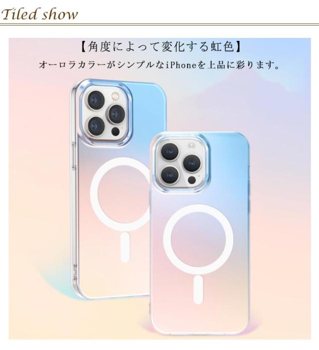 角度によって変化する虹色 かわいいケース iphone15 ケース magsafe iphone15 plus ケース クリア iphone15 pro ケース iphone15 promax ケース グラデーション マグセーフ ソフト ハード 二層構造 衝撃吸収 PC TPU オーロラ アイホン 磁石 マグネット iphone 14 ケース