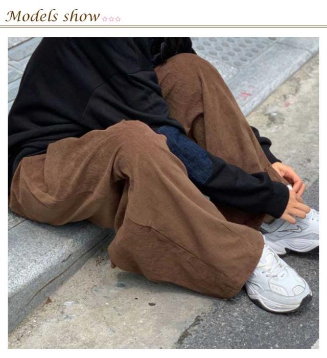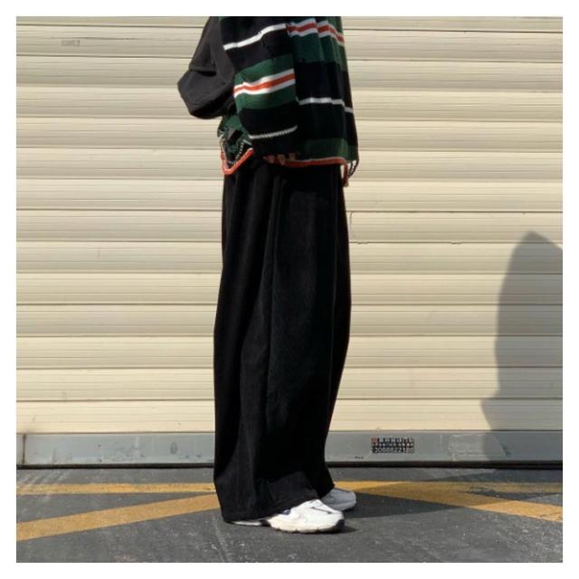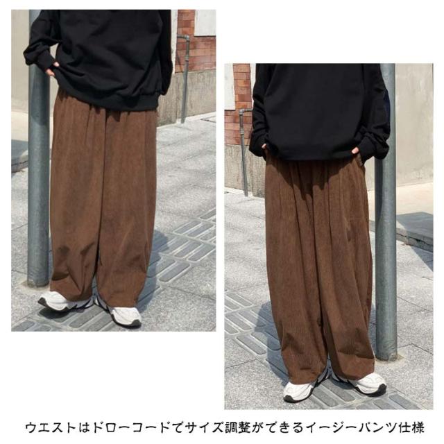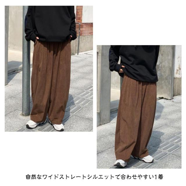 コーデュロイ ワイドパンツ メンズ コーデュロイパンツ ストレートパンツ ワイド イージーパンツ 裏起毛 厚手 秋冬 ズボン 暖かい 防寒 保温 カジュアルパンツ タック入り 大きいサイズ 大人 カジュアル ストリート 韓国 ブラック 茶色 【送無】