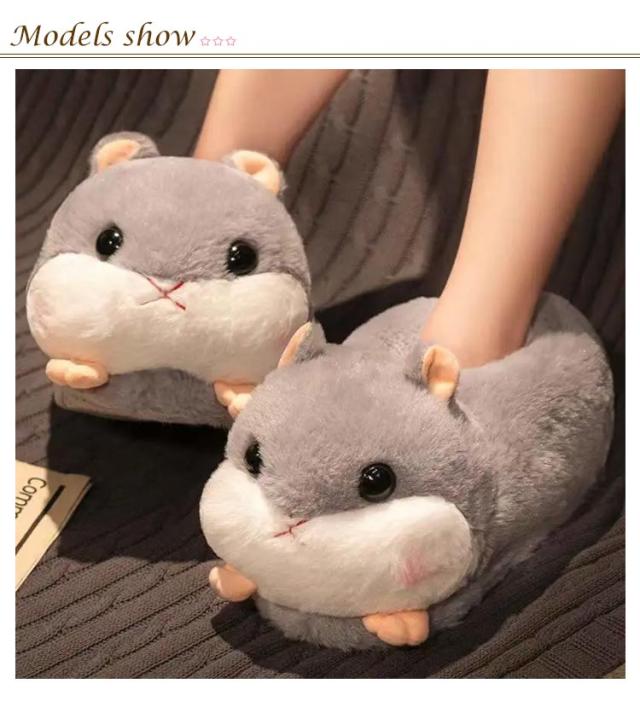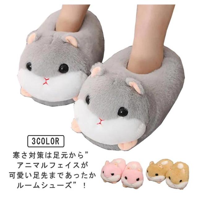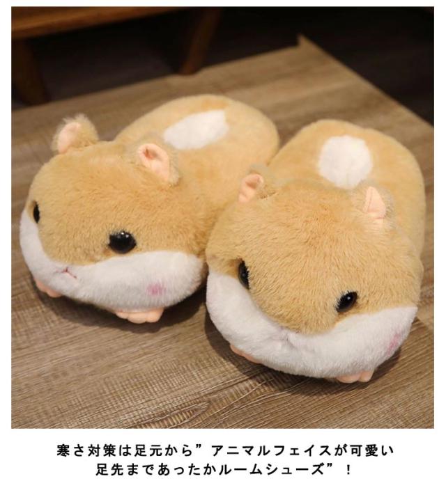 ルームシューズ ハムスター スリッパ かかと付き もこもこ ふわふわ ファー スリッパ ブーツ型 動物 アニマル かわいい おもしろ ルームブーツ 冬 あったか 防寒 保温 足元 暖かい 室内履き 軽量 滑り止め レディース メンズ 男女兼用 【送無】
