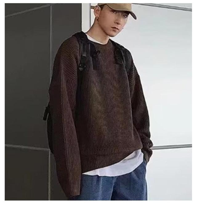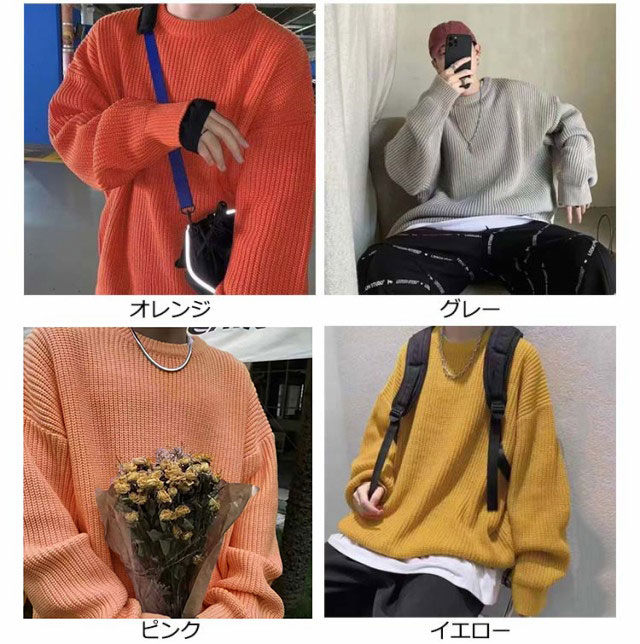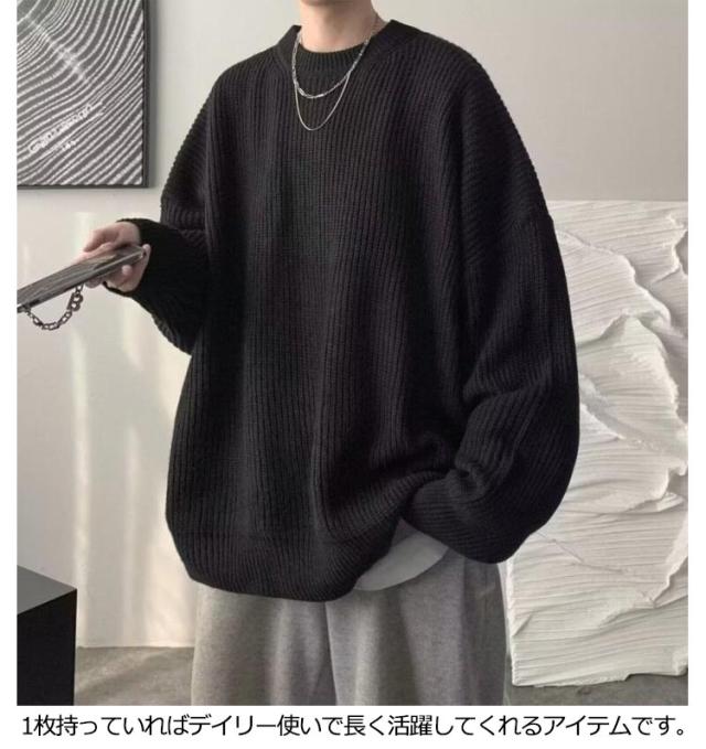 セーター メンズ ニット メンズ オーバーサイズ セーター メンズ ゆったり ニット オーバーサイズ ニット メンズ ニットセーター メンズ ビッグニット ビッグシルエット クルーネック ニット ブラック ニット 韓国ファッション 冬服 冬 秋冬 メンズファッション