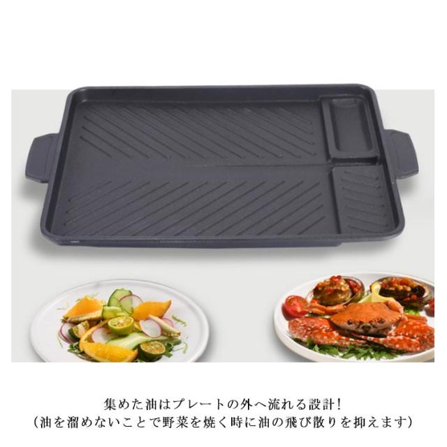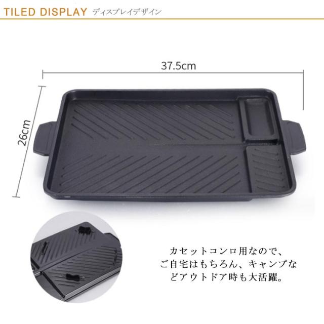 焼肉 サムギョプサル 斜め式 鉄板 韓国 プレート カセットコンロ用 焼肉プレート 韓国焼肉料理 焼肉鉄板 ヘルシー 溝付き 焼肉グリル 角型 油の自動排出構造 カロリーオフ マルチ焼き 黒 ブラック キャンプ アウトドア 送料無料