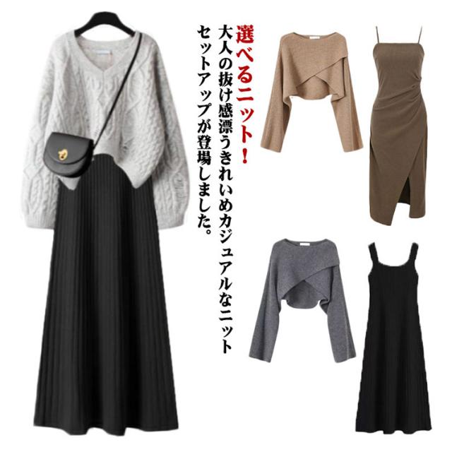 | 選べるニット!大人の抜け感漂うきれいめカジュアルなニットセットアップが登場しました。 シンプルながらこだわりシルエットでお洒落に差がつく、2点コーディネートセット。 スタイルアップ自然と叶います。 やわらかく暖かいニット素材で、これらからの季節に最もおすすめです。 セットアップで着用するのはもちろん、単品としても着回しがしやすいです。 | |