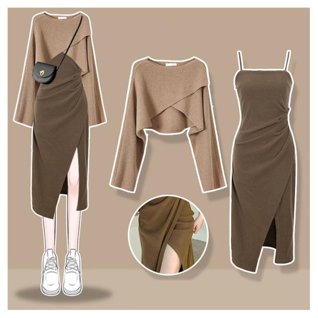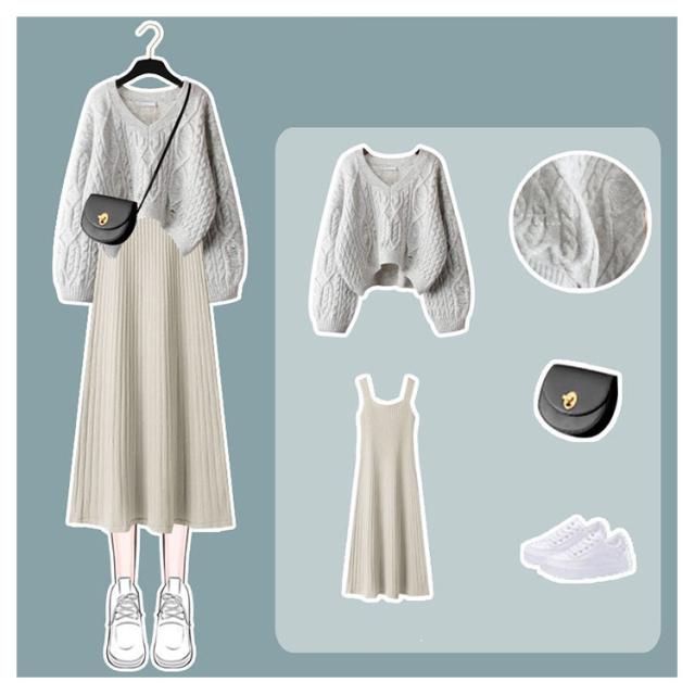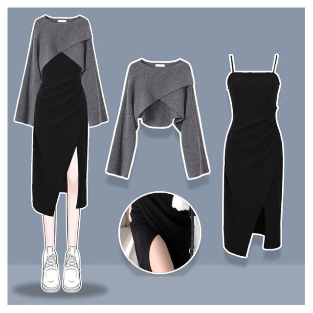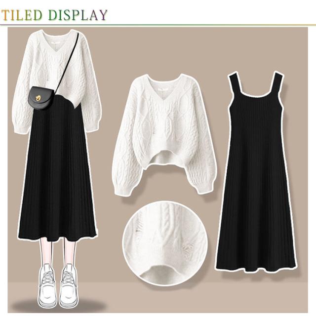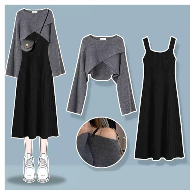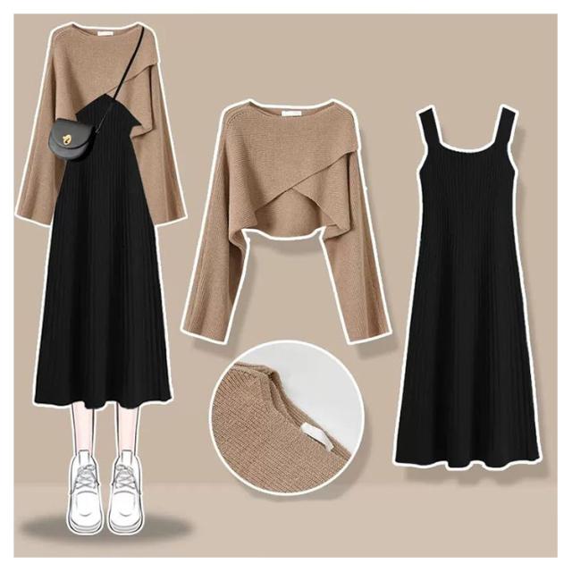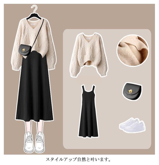 レイヤード ニット セットアップ ワンピース 長袖 ニットセーター 上下セット ニットセットアップ 春 秋 冬 ロングワンピース カジュアル シンプル 2点セット ゆったり M L XL 2XL 3XL 4XL