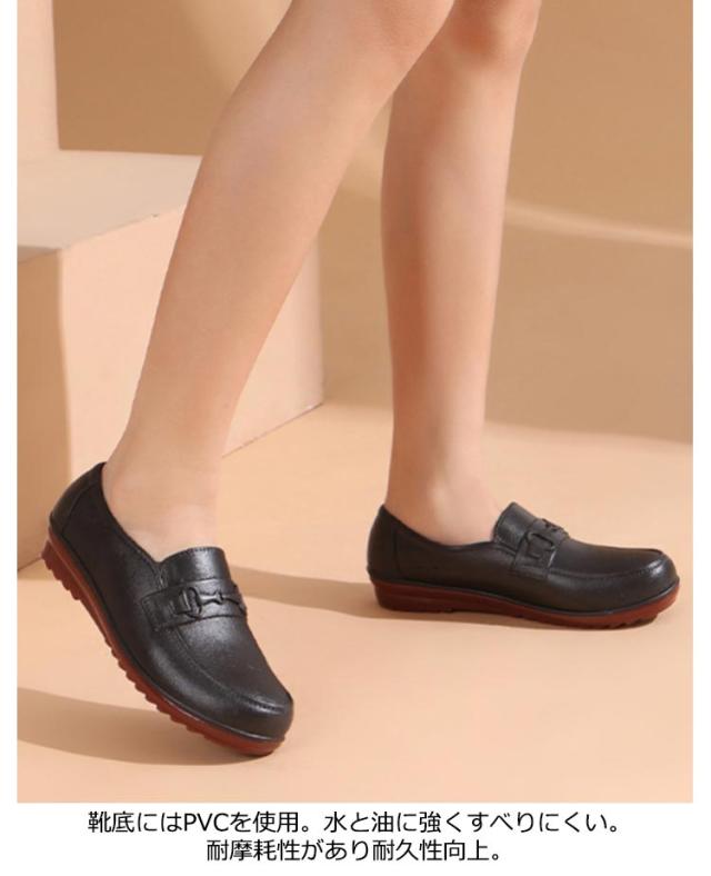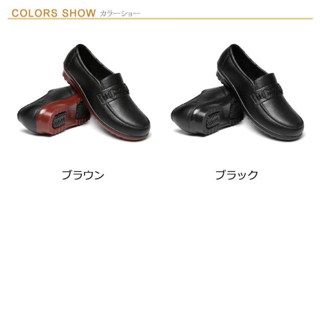 | 脱ぎ履きラクラク・滑りにくい・疲れにくい レディース用コックシューズ 中敷には抗菌防臭加工・水洗いができていつも清潔! 厚みのある中敷が足の疲れを軽減します。 アッパーにはPVCを使用したことで、撥水性、耐油性がよくなり、汚れが拭き取りやすくなりました! 靴底にはPVCを使用。水と油に強くすべりにくい。耐摩耗性があり耐久性向上。 驚きの軽量設計! ゆったりサイズなので、一日の立ち仕事での足のむくみにもやさしい。 | |