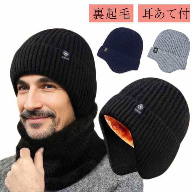 ニットキャップ 帽子 防寒 秋 冬 メンズ ニット キャップ 耳あて付 スヌード 裏起毛 ネックウォーマー イヤーフラップ ニット帽 ふわふわ 暖かい スヌード