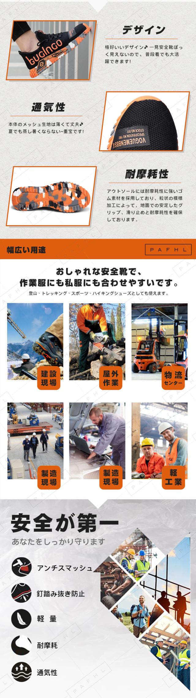 PAFHL 安全靴 あんぜん靴 作業靴 セーフティーシューズ スニーカー メンズ レディース ウォーキング シューズ 靴 鋼先芯 つま先保護 スポーツシューズ 軽量 通気 男女兼用 23.0cm-29.0cm JSAA A種相当