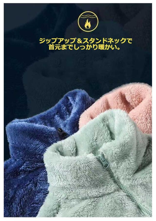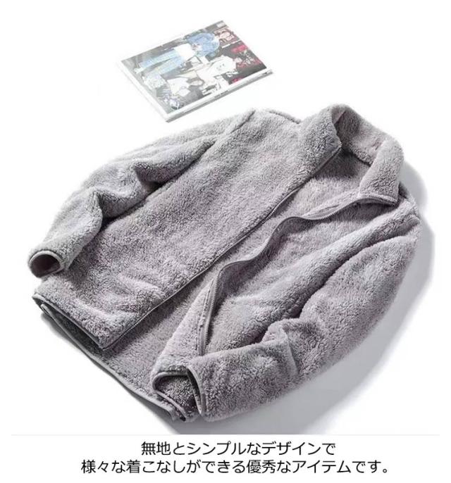両面ボア フリース ジャケット メンズ 秋冬 ジップジャケット ノーカラー アウター コート ジャンパー ジッパー パーカー スタンドネック ブルゾン 長袖 厚手 あったか 軽い コーラルフリース 無地 シンプル ゆったり カジュアル