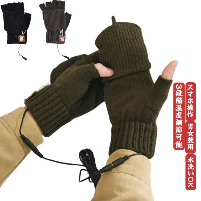 電熱手袋 電熱グローブ USB接続で加熱 あったか手袋 カバー付き 3段階温度調節 USB手袋 両面加熱 両用 指なし 暖房手袋 ヒーターグローブ 洗える パソコン作業 男女兼用 インナーグローブ 防寒対策 ハンドウォーマー 通勤 通学