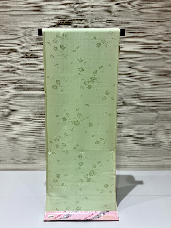 鮮やかなライトグリーンに綺麗な四季の紋様を織り込んだ美しい長襦袢生地です。