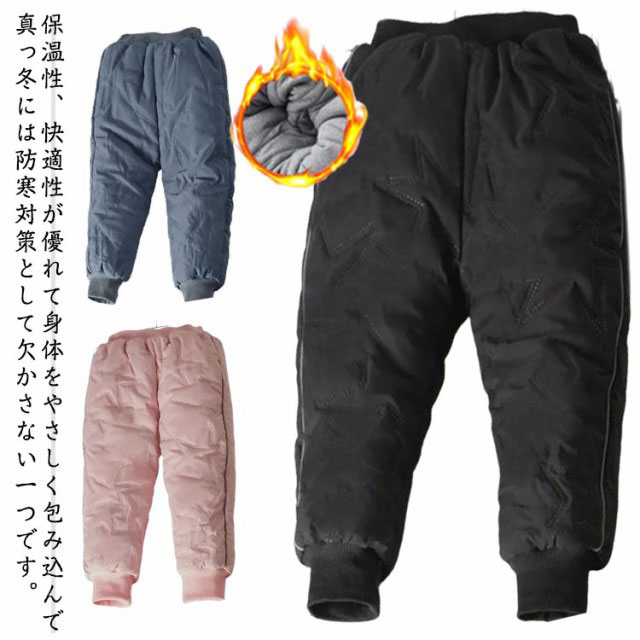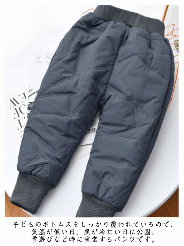 | 保温性、快適性が優れて身体をやさしく包み込んで真っ冬には防寒対策として欠かさない一つです。 暖かい空気の層を作り保温性に優れ 中綿入りです。 柔らかな素材なので、ふんわりとした肌触りで、子供の動きを妨げず、身体にやさしくフィット♪ 子どものボトムスをしっかり覆われているので、気温が低い日、風が冷たい日に公園、雪遊びなど時に重宝するパンツです。 | |