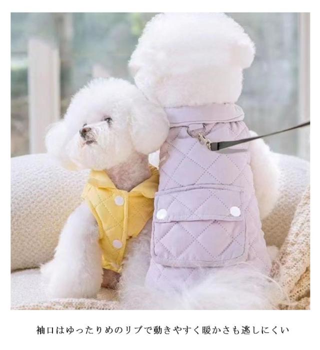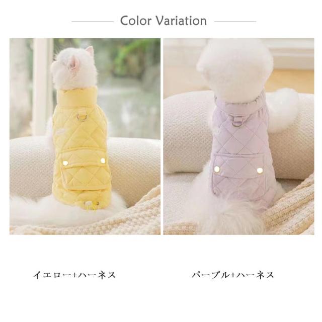 | ハーネス付き!秋冬にお勧めのアウター!これ一枚で秋冬のファッション決まります 中綿入り、軽くて暖かい、冬防寒対策として、お散歩や出かけ際に最適な一着です。 寒さが苦手なわんちゃんにぴったりなあったかウェア 袖口はゆったりめのリブで動きやすく暖かさも逃しにくい 軽くて防寒性も抜群、寒い日のお出かけも快適です | |