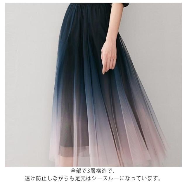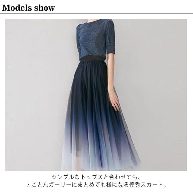 チュールスカート ロング ボリューム レディース フレア プリーツスカート ロング丈 ボトムス フレア チュールス カート ボトムス ミモレ丈 グラデーションスカート グラデーション チュールロングスカート 大人 送料無料