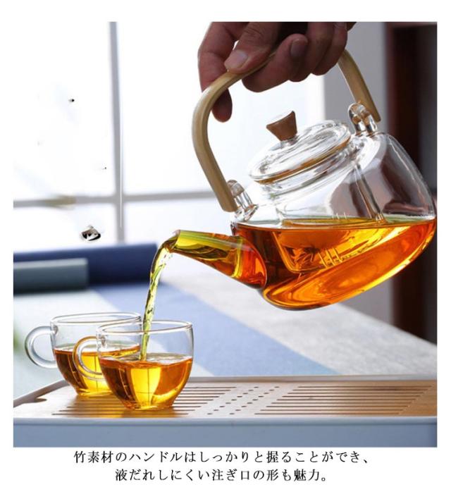 ガラスケトル やかん 直火用 耐熱ガラスポット ティーポット 茶こし付き ガラスポット 急須 耐熱ガラス 直火対応 やかん ケトル 竹製ハンドル ジャンピング 紅茶 ハーブティー 緑茶 お茶ポット 送料無料