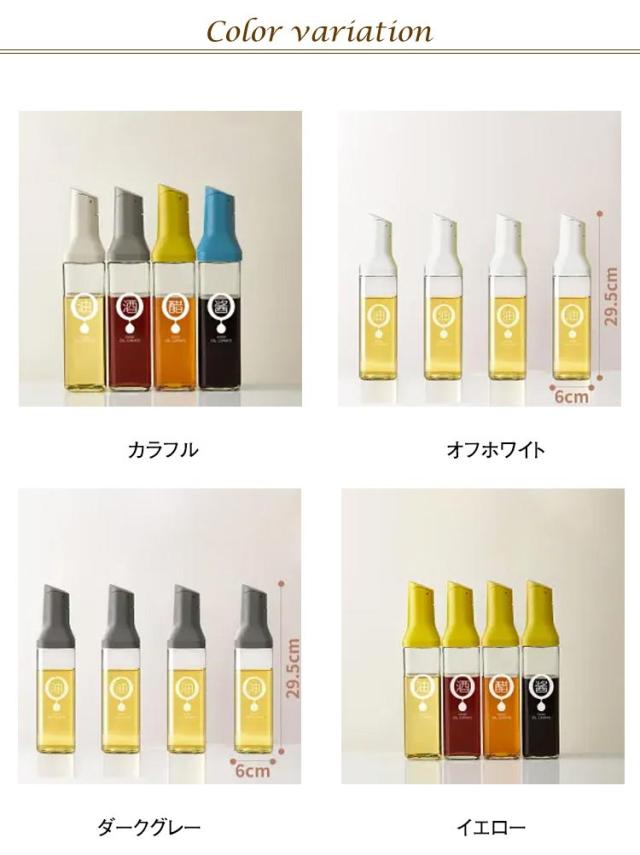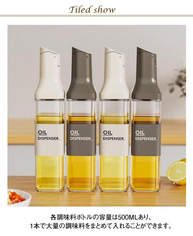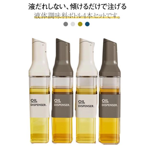| 液だれしない、傾けるだけで注げる液体調味料ボトル4本セットです。 各調味料ボトルの容量は500mlあり、1本で大量の調味料をまとめて入れることができます。 ガラス瓶の口が大きく、詰め替えが簡単なので、経済的かつ環境に優しい使い方ができます。 オシャレなデザインで、キッチンに置いておくだけでもインテリアになるアイテムです。 傾けることで自動的にフタが開閉し、片手でも簡単に注ぐことができる便利な調味料容器です。 | |