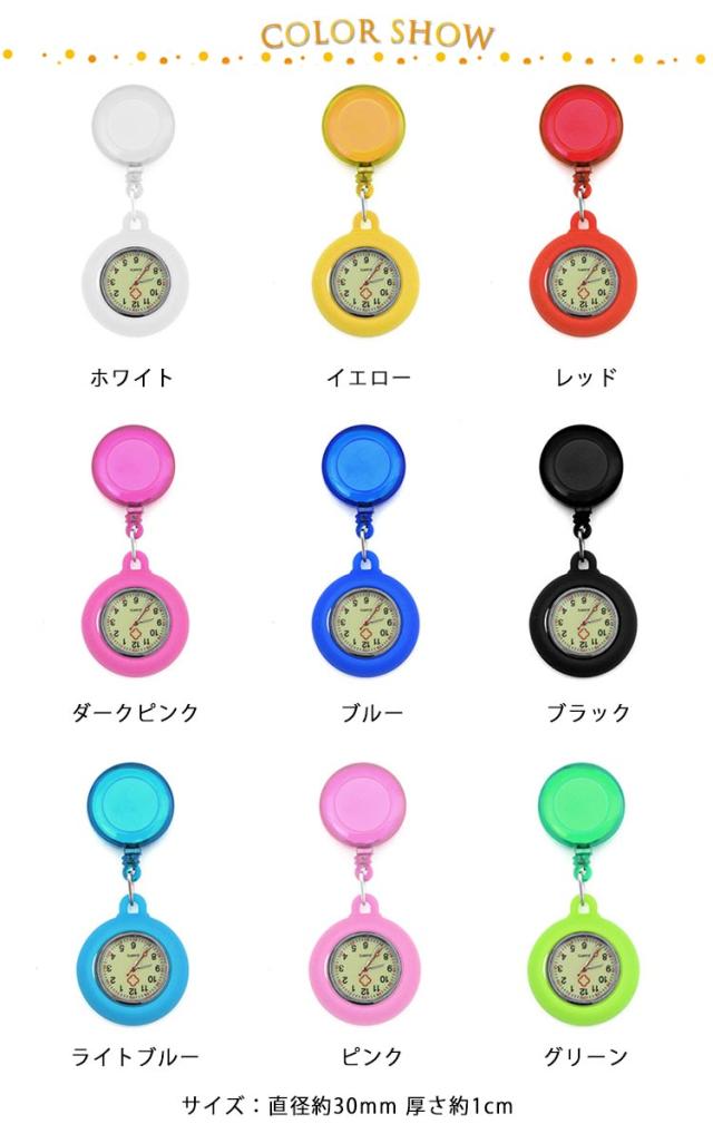 | リール付きナースウォッチ 付け替え便利なクリップタイプ 時間の確認がしやすいリール伸縮70cm | |