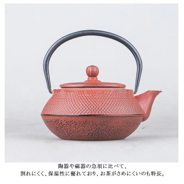 | 伝統工芸と現在のデザインが融合したオシャレなカラー急須。 鉄のもつ重厚感とアクセントのある鮮やかなカラーの組み合わせはインテリアとしても映える。 陶器や磁器の急須に比べて、割れにくく、保温性に優れており、お茶がさめにくいのも特長。 鉄瓶急須の内部はホーロー加工が施され、水分が残っていても錆にくくお手入れ簡単。 お茶だけでなく、コーヒーなどもカラー急須でお楽しみいただけます。 | |