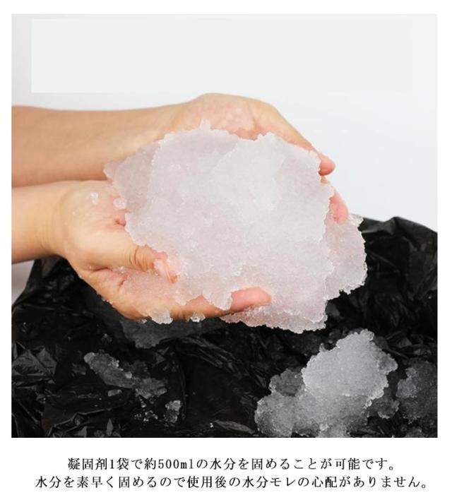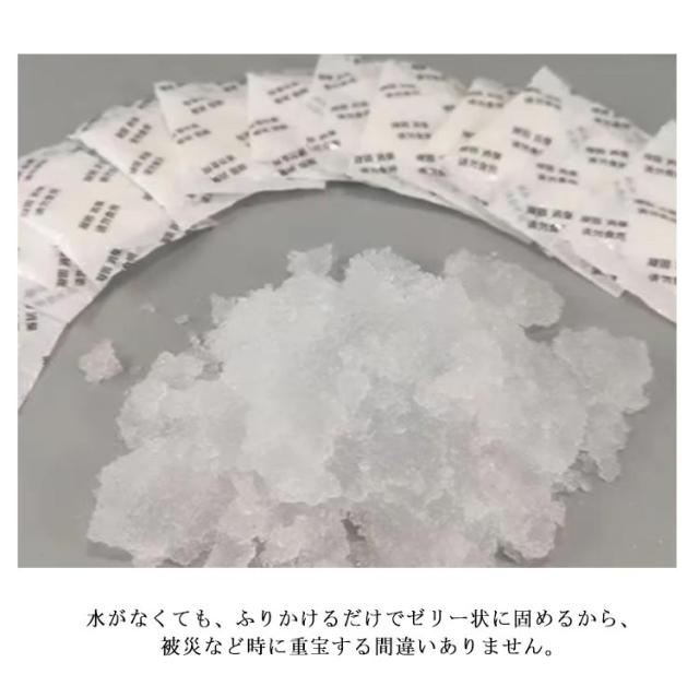| 非常用簡易トイレ用凝固剤 凝固剤は個別包装となっており、衛生的で保管・持ち運びしやすいポータブルトイレ用凝固剤。 凝固剤1袋で約500mlの水分を固めることが可能です。水分を素早く固めるので使用後の水分モレの心配がありません。 水がなくても、ふりかけるだけでゼリー状に固めるから、被災など時に重宝する間違いありません。 アウトドアや車内の簡易トイレだけでなく、介護用ポータブルトイレにも役に立ちます。 | |