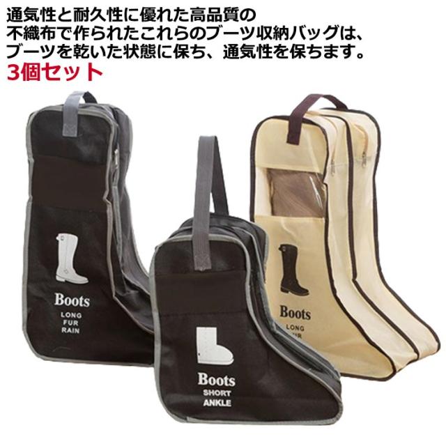 3個セット!ブーツ 収納 ケース 靴収納 ブーツ収納カバー シューズバッグ ロングブーツ ショートブーツ マルチ収納ケース 持ち手付き 透明窓 防塵 立体 透明 窓付き 折りたたみ 軽量 コンパクト パッキング 収納袋 旅行 出張 送料無料