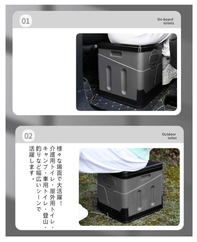 | 蓋付きポータブルトイレ+ワンタッチテント+12回分凝固剤+ゴミ袋+収納袋セット。 便座一体型折りたたみ式ポータブルトイレです。 アウトドア、部屋や車の中、災害、断水の際に大活躍します。 人間工学に基づいて設計されているので小さなお子様からお年寄りの方まで安心してお使いいただけます。 ゴミ箱としてもお使いいただけます。狭い車内にも置くことができます。 様々な場面で大活躍!介護用トイレ・屋外用トイレ・キャンプ・車用トイレ・登山・釣りなど幅広いシーンで活躍します。 水洗いできるのでいつでも清潔を保てます。 軽量設計なので持ち運び、組立て楽々! 力の弱い方、女性、小さなお子様でも簡単に組立てることができます。また折りたたみ式で平らに収納できるため、収納場所に困りません。 | |
