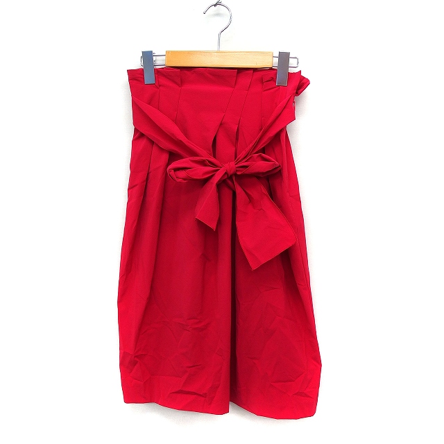【中古】アンタイトル UNTITLED フレア スカート ひざ下丈 ミディ丈 リボン 無地 1 レッドピンク /FT22 レディース
