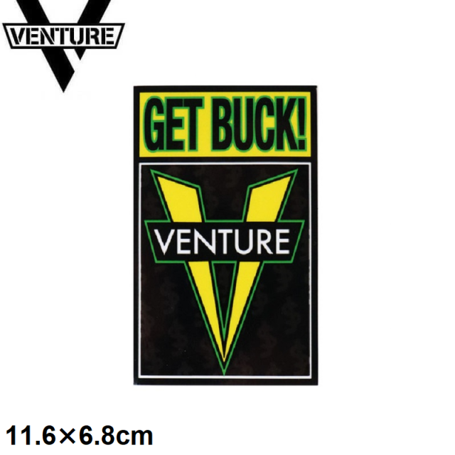 ベンチャー VENTURE スケボー ステッカー VENTURE X SHAKE JUNT GET BUCK STICKER ブラック/イエロー 11.6cm x 6.8cm NO46
