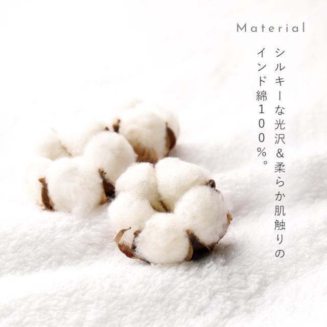 シルキーな光沢、やわらかな肌触りが特徴のインド綿100%。洗濯してもゴワツキがなく滑らかさが続きます。