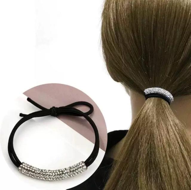 キラキラと煌めくラインストーンを埋め込んだ立体感のあるヘアゴムです。