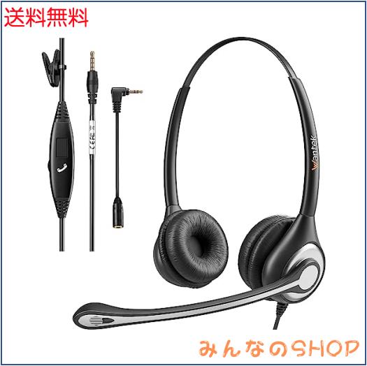 ヘッドセット携帯電話用3.5mm 両耳 ノイズキャンセリングマイク付きとコール制御PC用ヘッドホン Web会議、Skype、オフィス、在宅勤務、ビ