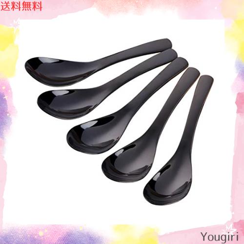 Buyer Star レンゲ スプーン 5本組 ラーメン スープ カレー 中華丼 れんげ 18-8 ステンレス製 金属食器 厚い 蓮華 食洗機対応 抗菌 ブラ