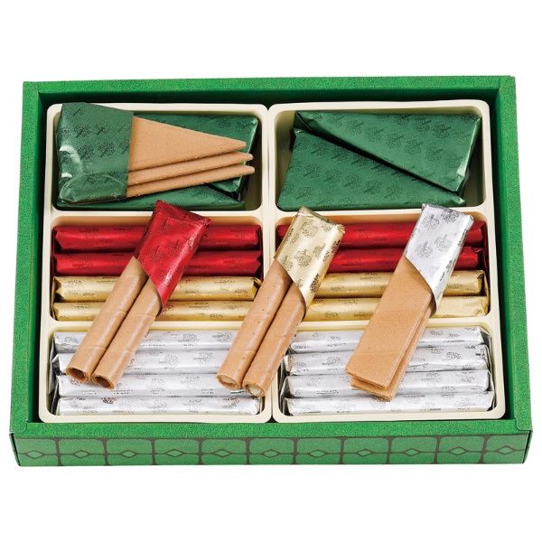 三角×8(24枚)、短冊×8(16枚)、丸型ミルクチョコ・丸型ホワイトチョコ×各4(各8本)