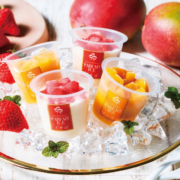 程よい甘さと酸味が特徴のパフェアイス 横浜ロイヤルパークホテル監修のイチゴとマンゴーのパフェアイスセットです。