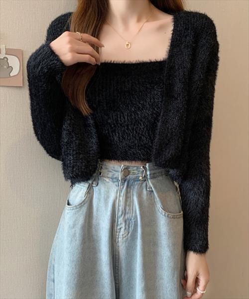 テディショップ(TeddyShop)/レディース アンサンブルリブシャギーニットボレロカーディガン+キャミソール 2点セット ショート丈