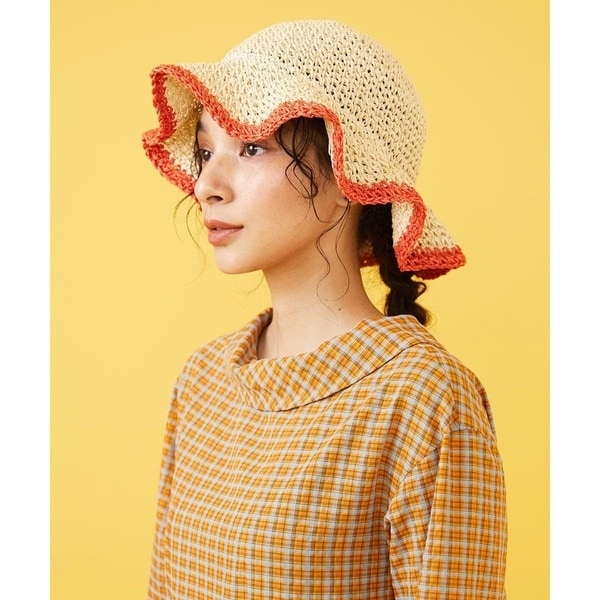 ナチュラルなペーパー素材をざっくりと編み上げたシーズナルな雰囲気溢れるチューリップハット。ホコモモラらしい配色のバイカラーにツバのフリルのシルエットが印象的なデザインです。軽く折りたたんで持ち運びしやすく夏場にも最適。リゾートシーンからデイリーのお出かけまで、軽やかな素材感が夏気分を盛り上げてくれるおすすめのアイテムです。